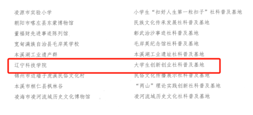 为深入贯彻落实《辽宁省科学技术普及办法》和《辽宁省社会科学普及发展规划纲要(2021-2025年)》,推动新时代社会科学普及工作高质量发展,经学校申请,由本溪市社会科学界联合会推荐,辽宁省社会科学界联合会党组研究,日前,我校“大学生创新创业社科普及基地”被认定为“辽宁省社会科学普及基地”。