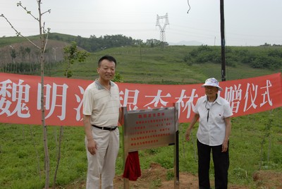 2012年3月,魏明波校友到我校新校区参观后,决定为母校的绿化贡献一份力量,经过考查,捐款3000元购买了既有经济价值又有观赏价值银杏树苗赠送给母校。在后勤管理处积极努力下,银杏树苗顺利栽植,占地约6亩,现已成活,绿意盎然。