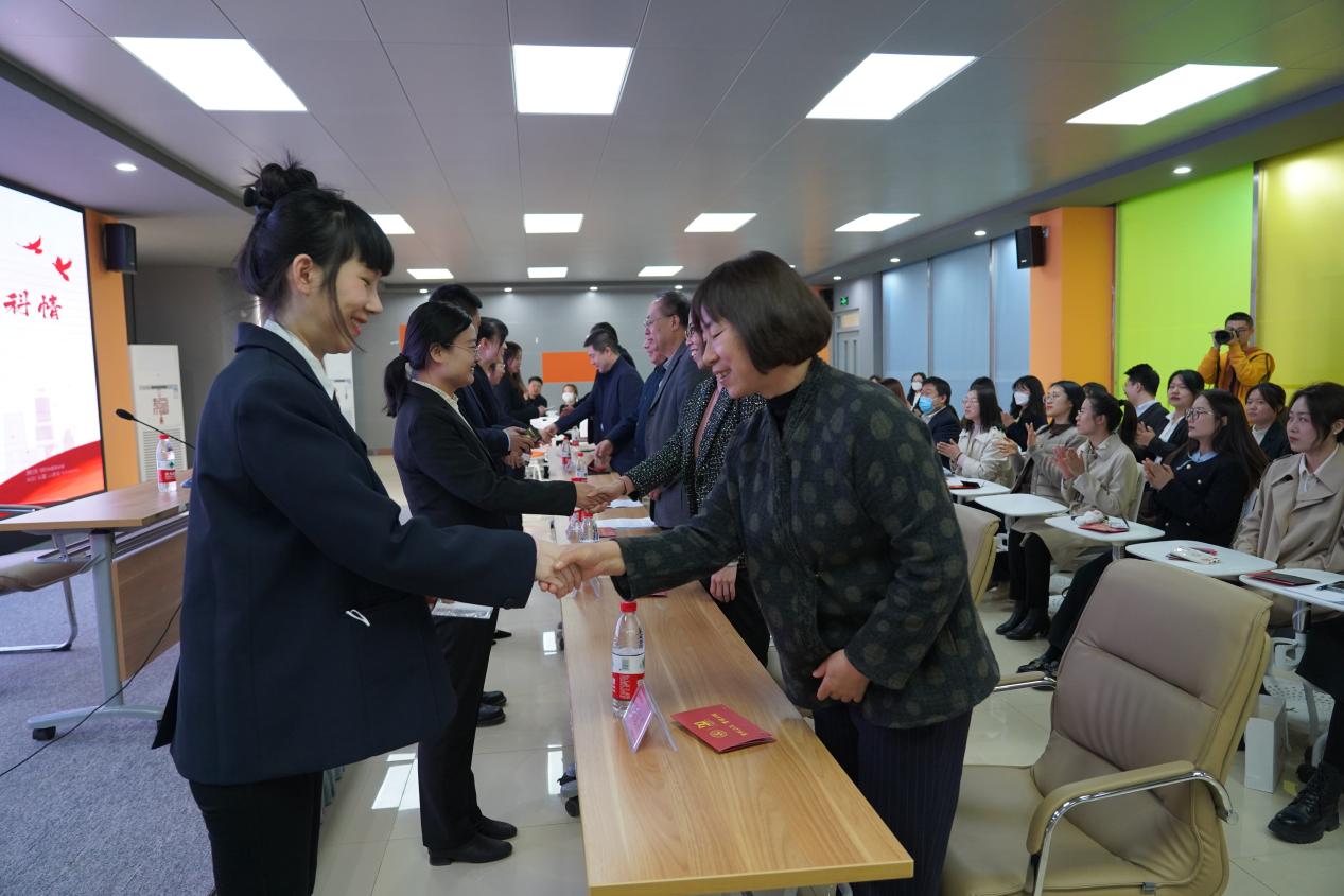 生物医药与化学工程学院教师史雅静代表老教师分享了自己38年教龄生涯的心得感悟,勉励大家与国家同向、与学校同行,在三尺讲台孕育桃李,凭一片丹心孕育初心,争做新时代优秀教师。史雅静还将自己珍贵的教案传承给了新教师。新入职教师代表生物医药与化学工程学院教师田甜作表态发言,她代表新入职教师许下庄严承诺,将在三尺讲台上谱写新时代的教育新篇章,为辽科未来的壮美画卷绘出自己浓墨重彩的一笔。