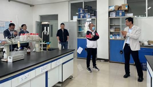 调研期间,一行六人参观了我校生物医药与化学工程学院制药工程实验室、生物技术实验室。生物医药与化学工程学院科研副院长张丹凤博士,制药工程教研室主任黄占波博士、副主任姜春风博士,生物教研室主任王振宇博士陪同。姜春风就制药工程各实验室的功能及特点、主要开展的课题研究方向及即将建设的多功能流动实验室进行了详细的讲解介绍,王振宇博士对生物实验室开展的主要研究内容及相关实验仪器设备进行了介绍。