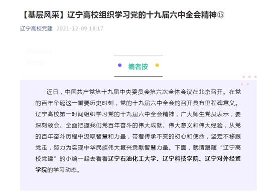 【辽宁高校党建】【基层风采】辽宁高校组织学习党的十九届六中全会精神⑮