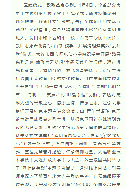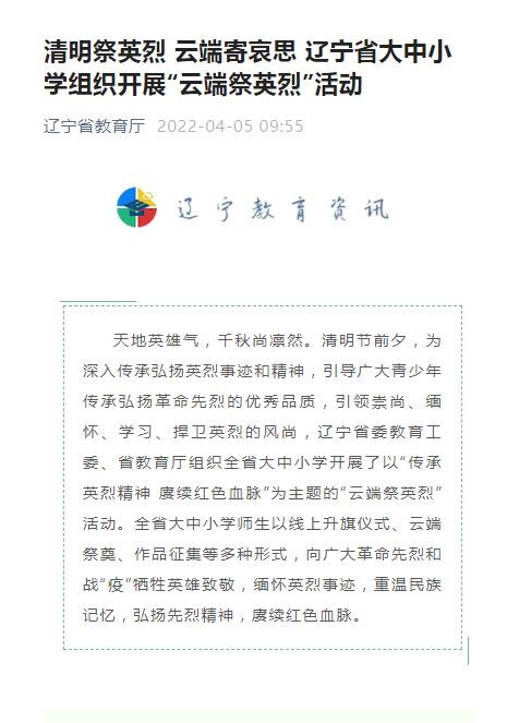 【辽宁省教育厅】清明祭英烈 云端寄哀思 辽宁省大中小学组织开展“云端祭英烈”活动