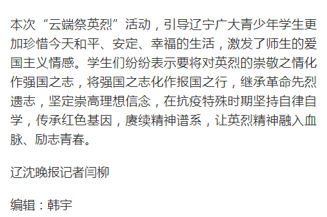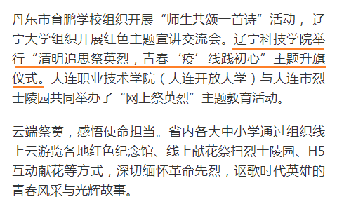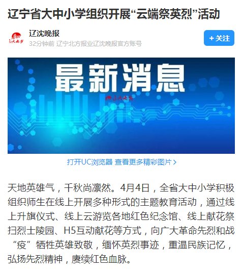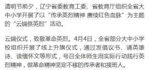 【辽沈晚报】辽宁省大中小学组织开展“云端祭英烈”活动