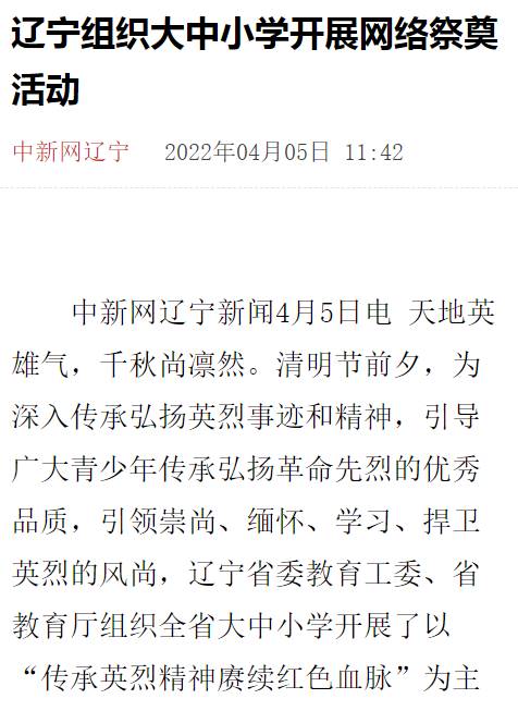 【中新网辽宁】辽宁组织大中小学开展网络祭奠活动