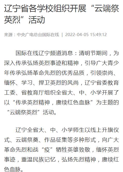 【央广国际在线】辽宁省各学校组织开展“云端祭英烈”活动