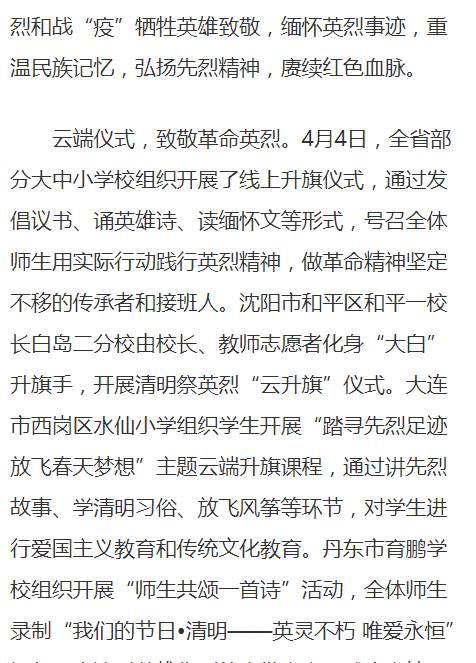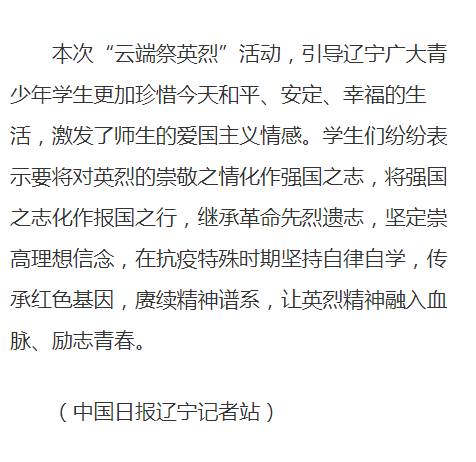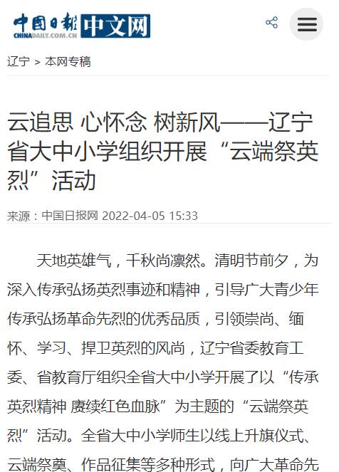 【中国日报】云追思 心怀念 树新风---辽宁省大中小学组织开展“云端祭英烈”活动