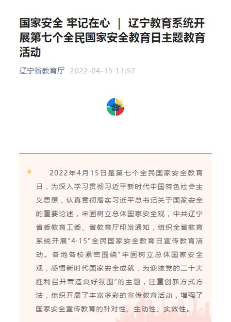 【辽宁省教育厅】国家安全 牢记在心|辽宁教育系统开展第七个全民国家安全教育日主题教育活动