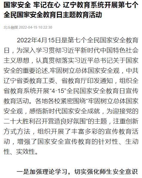 【北斗融媒】国家安全 牢记在心 辽宁教育系统开展第七个全民国家安全教育日主题教育活动