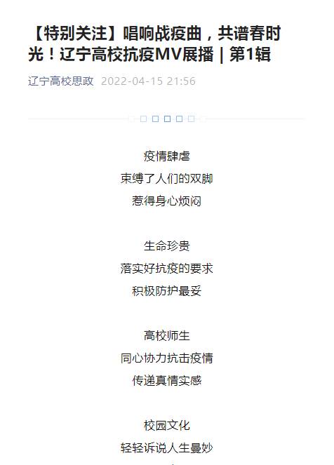 【辽宁高校思政】【特别关注】唱响战疫曲,共谱春时光!辽宁高校抗疫MV展播 | 第1辑