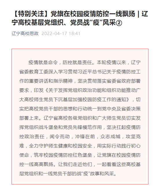 【辽宁高校思政】【特别关注】党旗在校园疫情防控一线飘扬 | 辽宁高校基层党组织、党员战“疫”风采②