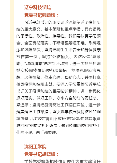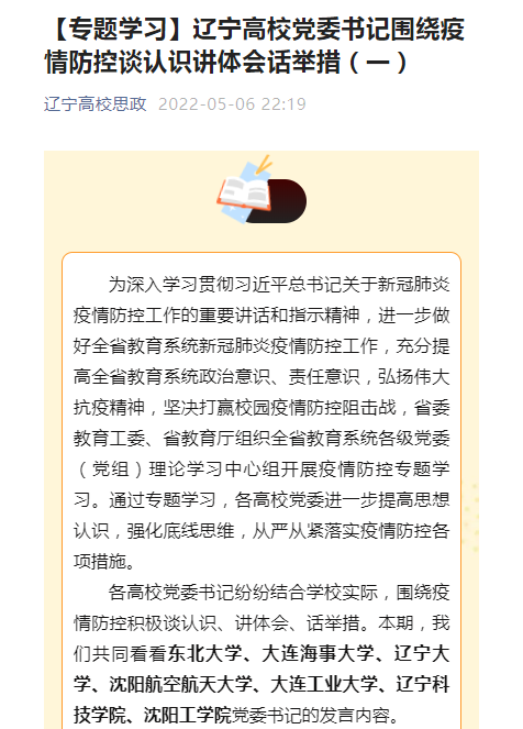 【辽宁高校思政】【专题学习】辽宁高校党委书记围绕疫情防控谈认识讲体会话举措(一)