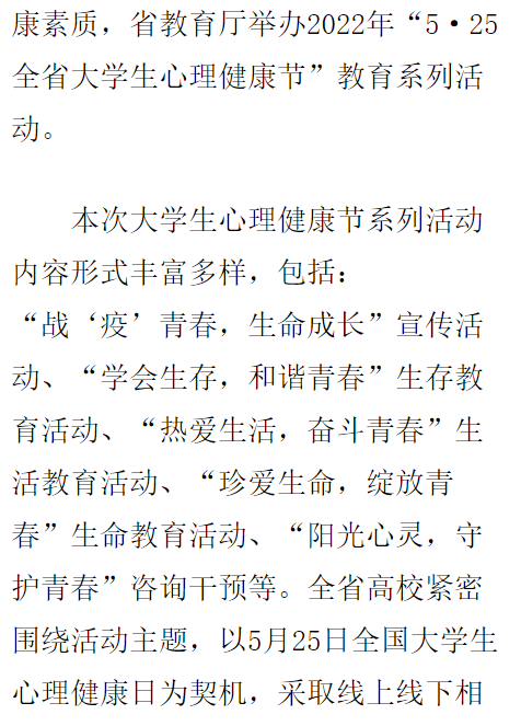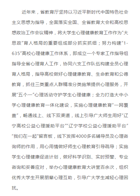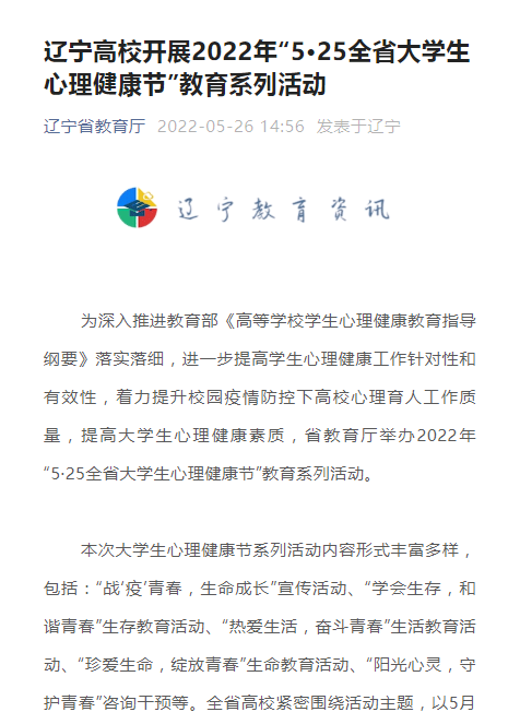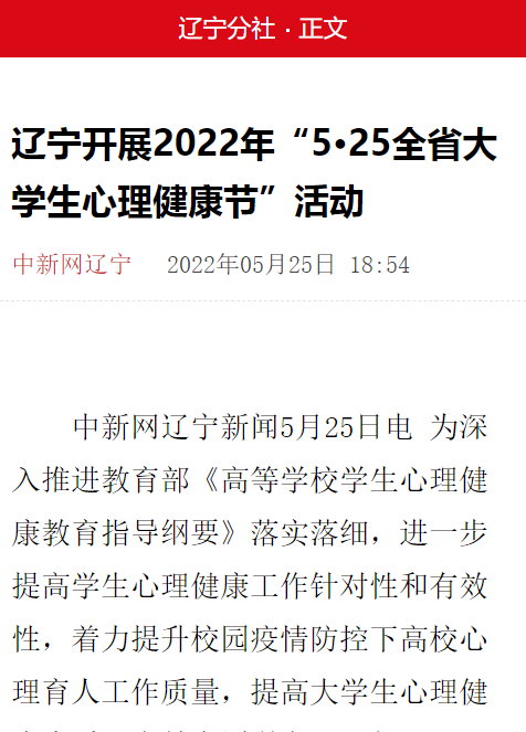 【辽宁省教育厅】【中新网辽宁】辽宁开展2022年“5·25全省大学生心理健康节”活动