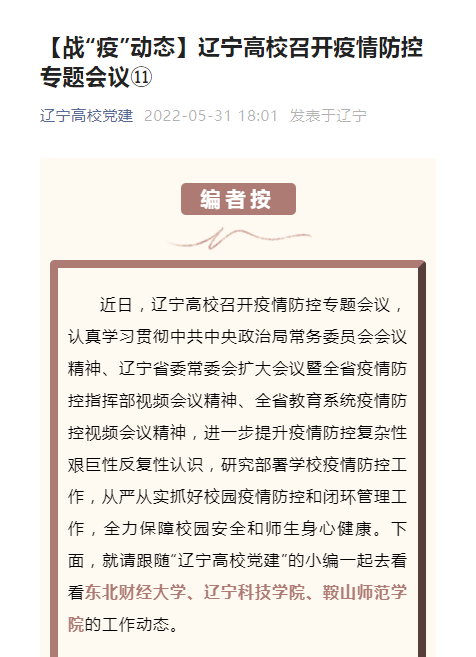 【辽宁高校党建】【战“疫”动态】辽宁高校召开疫情防控专题会议⑪