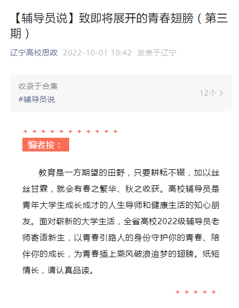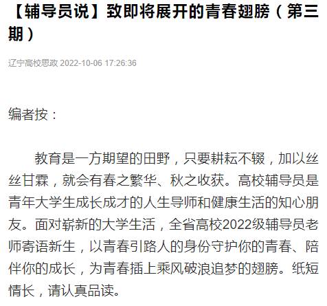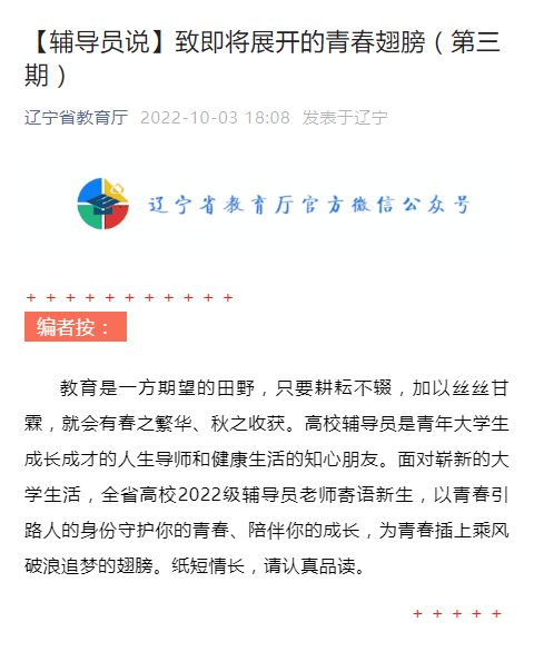 【辽宁省教育厅】【辽宁高校思政】【北斗融媒】【辅导员说】致即将展开的青春翅膀(第三期)