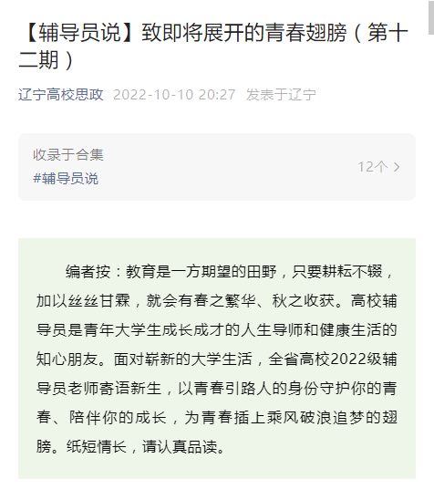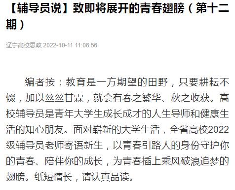【辽宁高校思政】【北斗融媒】【辅导员说】致即将展开的青春翅膀(第十二期)