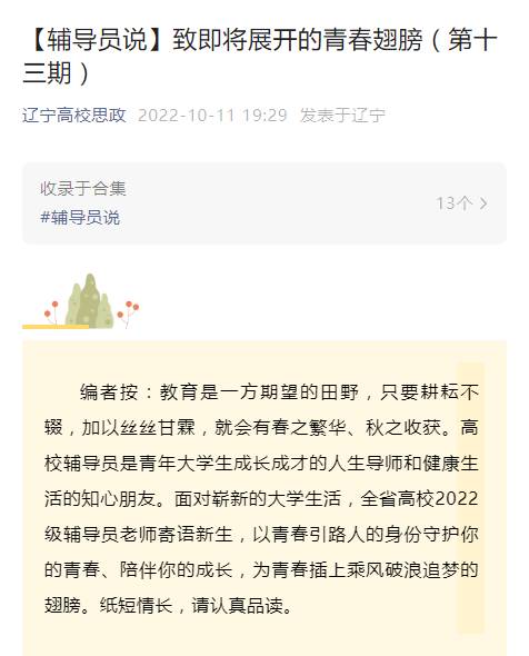 【辽宁高校思政】【辅导员说】致即将展开的青春翅膀(第十三期)