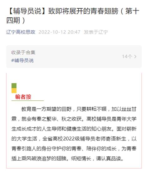 【辽宁高校思政】【辅导员说】致即将展开的青春翅膀(第十四期)