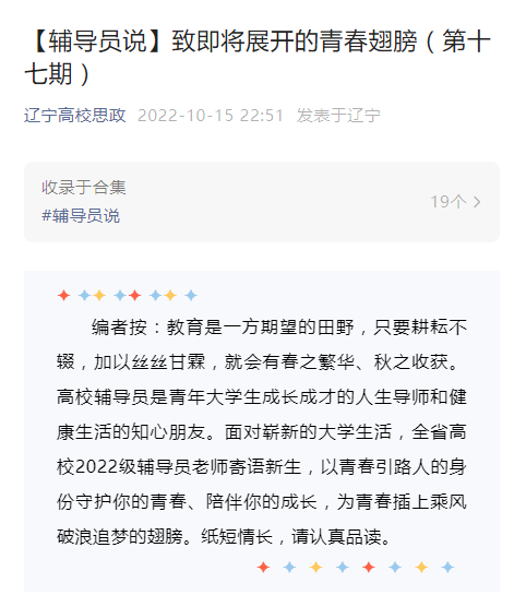 【辽宁高校思政】【辅导员说】致即将展开的青春翅膀(第十七期)