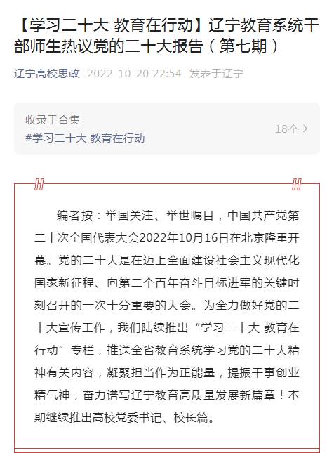 【辽宁高校思政】【学习二十大 教育在行动】辽宁教育系统干部师生热议党的二十大报告(第七期)