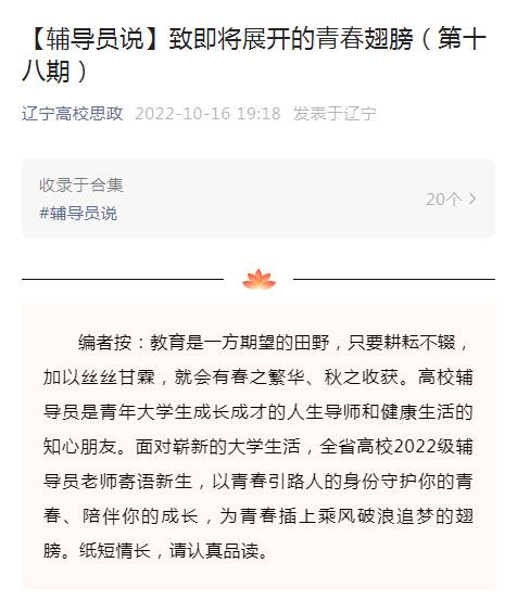 【辽宁高校思政】【辅导员说】致即将展开的青春翅膀(第十八期)