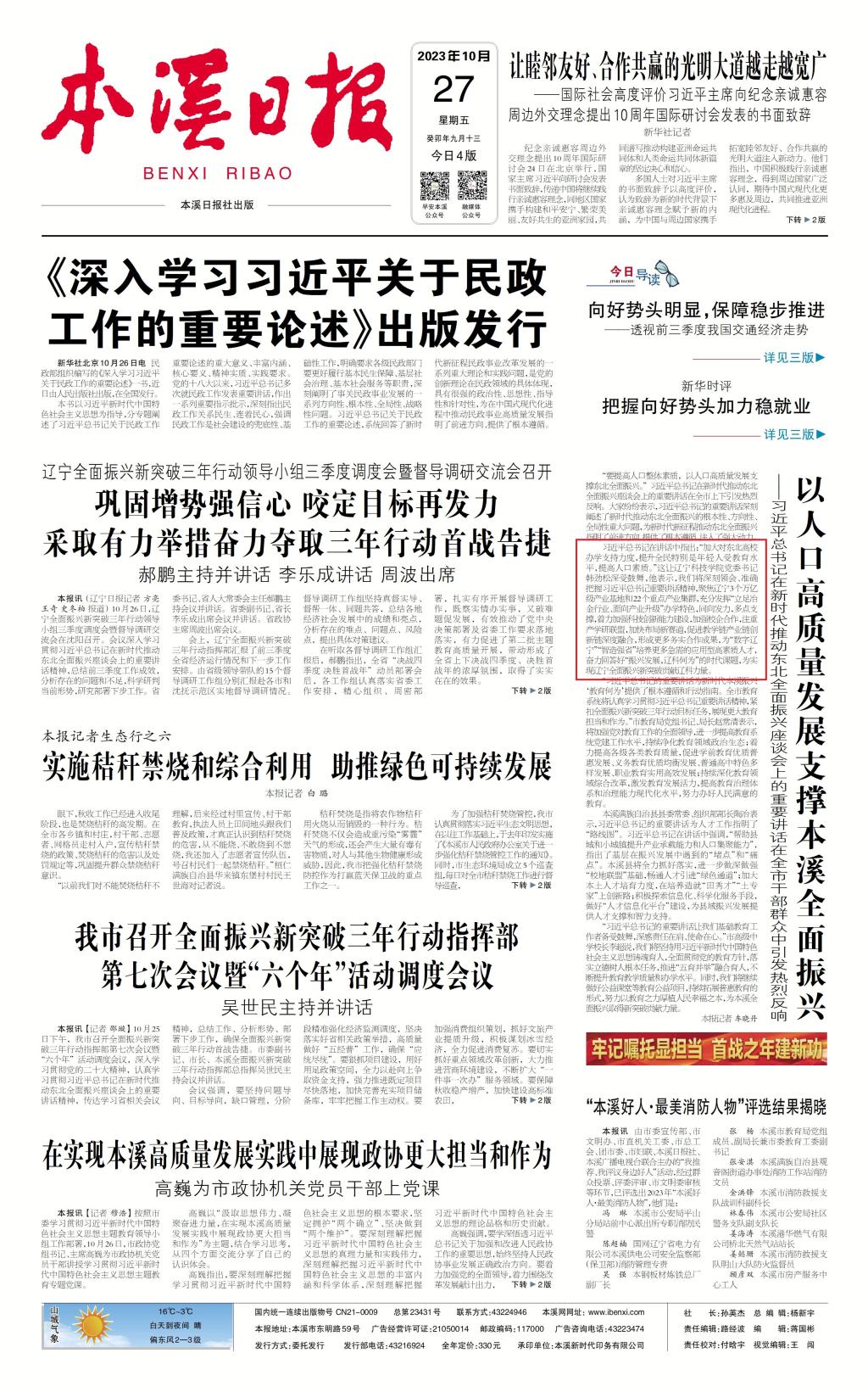 【本溪日报】习近平总书记在新时代推动东北全面振兴座谈会上的重要讲话在全市干部群众中引发热烈反响
