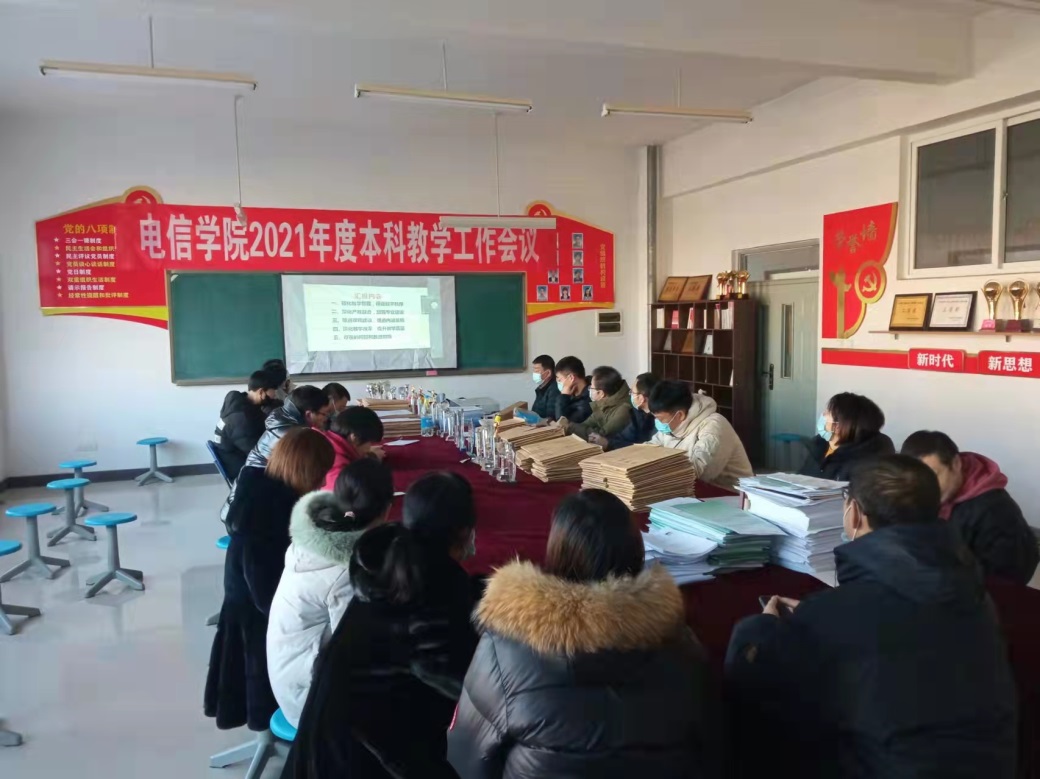 1月5日上午,电信学院召开2021年度本科教学工作会议,全院教职工参加了会议,副校长吴国玺出席会议并点评。考虑疫情防控的需要,本次会议分为主会场和分会场同时进行。副院长赵双元就2021年度本单位本科教学工作做了总结汇报,报告分“强化教学管理”、“深化产教融合”、“推进课程建设”、“深化教学改革”、“存在的问题和改进措施”五部分内容,着重总结了学院在2021年度积极探索应用型发展模式和产教融合、校企合作办学机制,开展校企合作、1+X证书、订单定制培养工作,推进专业建设中的工作情况。
