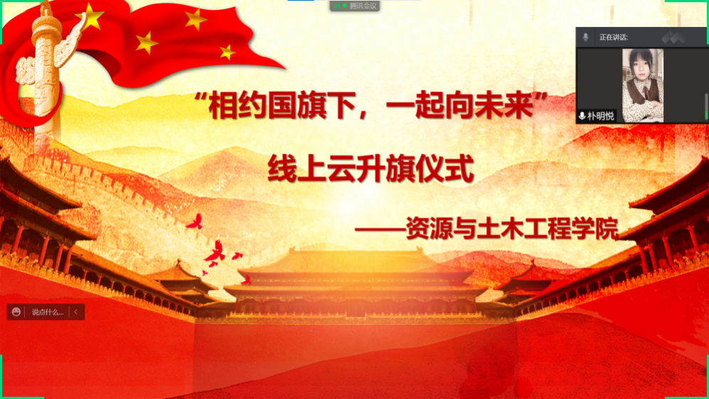 至此,资源与土木工程学院,“相约国旗下,一起向未来”线上升旗仪式圆满落幕,愿资源与土木工程学院全体学生,在正好的年纪,奋力拼搏,不松劲,不懈怠,不退缩,不畏难,用自己的切实行动完成国家与民族赋予我们青年一代的责任与使命,在新时代背景下,共同努力,勇于拼搏,一起向未来。
