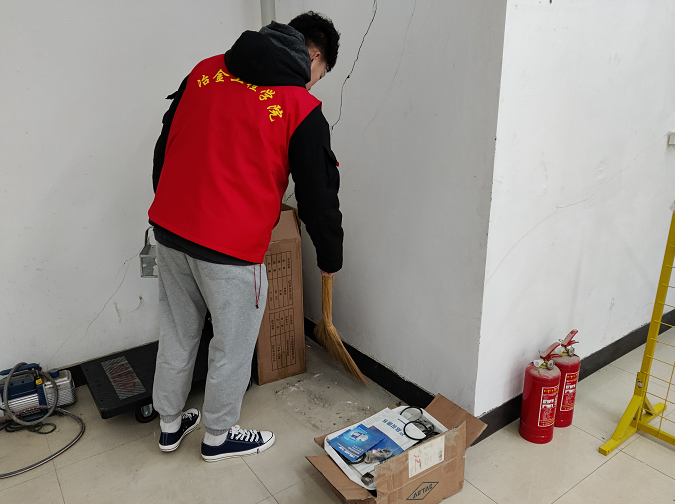 活动中,志愿者们对冶金工程学院实验室、教室进行了彻底地清扫。大家分成几个小组,手拿抹布、拖布,各自忙着自己的任务……他们发扬不怕苦、不怕累、不怕热的志愿精神,齐心合力,不放过任何一个死角,不落下一张纸屑,在大家共同的努力下,同学们的学习环境焕然一新。