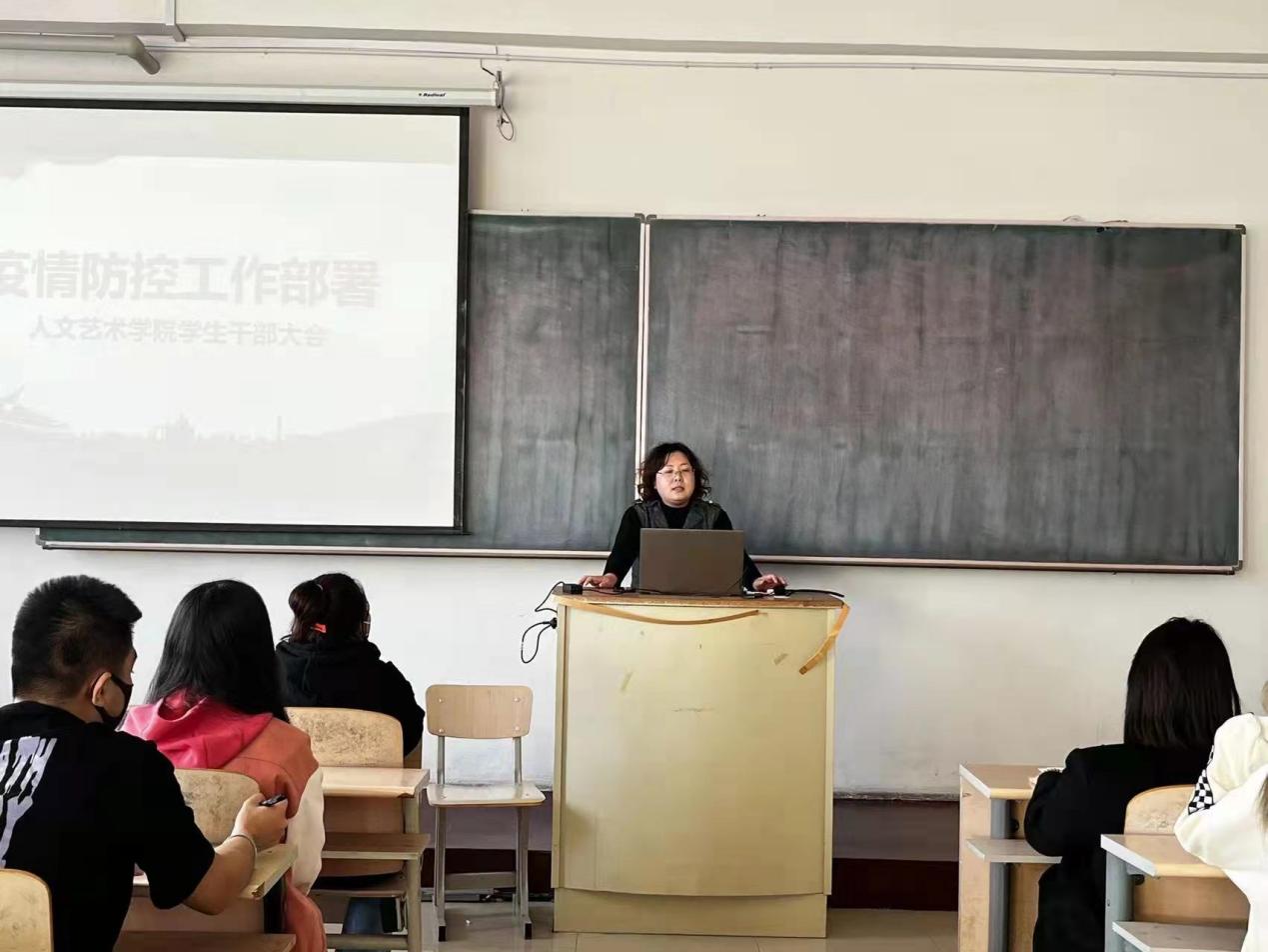 鉴于目前疫情形势严峻,为贯彻落实疫情防控工作的最新要求,确保全校师生生命安全和身体健康,人文艺术学院于3月11日下午组织召开学生干部疫情防控工作会议。本次会议采用线上与线下相结合的形式开展,辅导员于苗老师、姜旭慧老师、各班团支书、班长及分团委学生会副部级以上人员参加了此次会议。