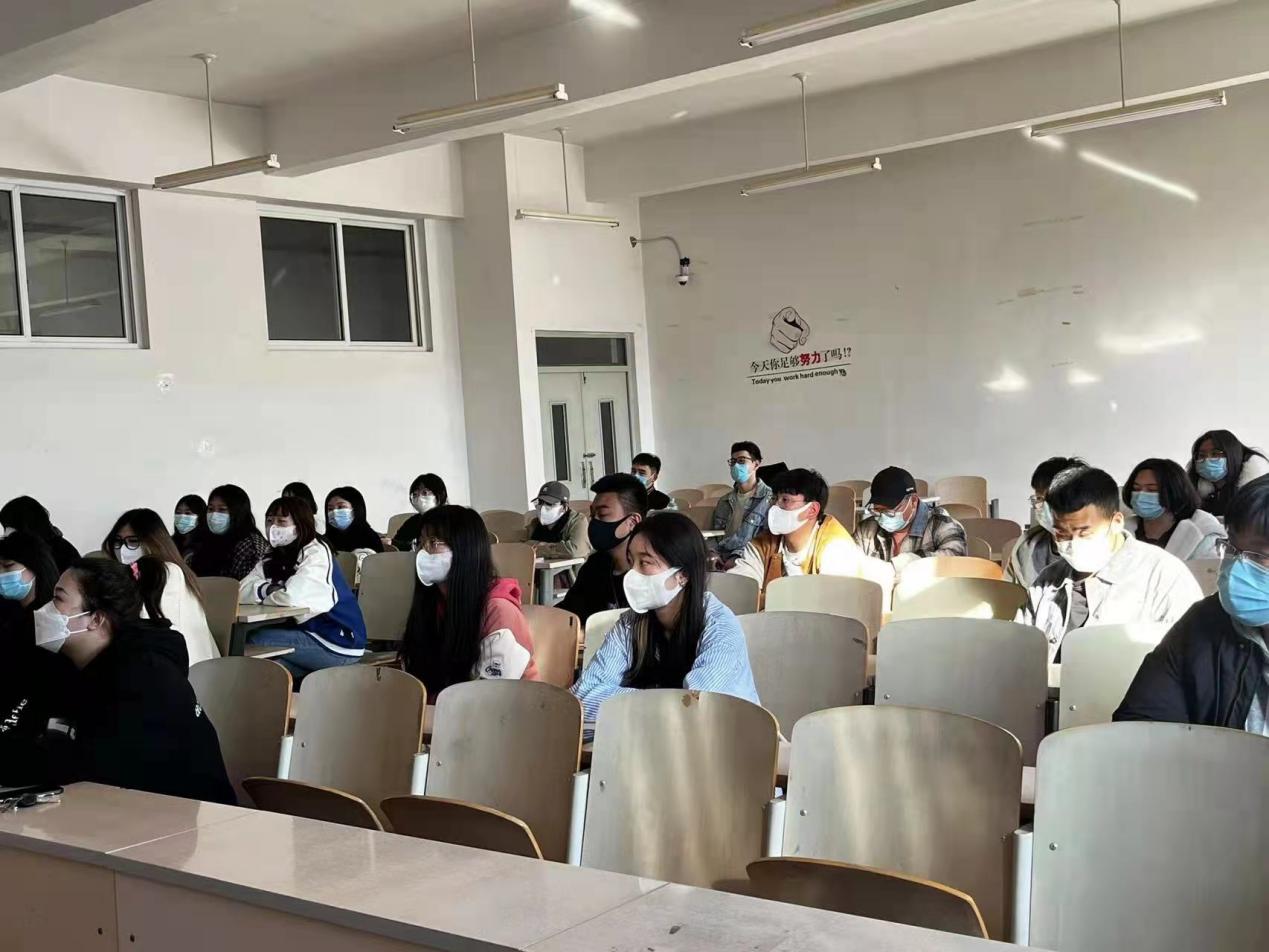 随后,于苗老师主要从三个方面强调我院日常教学、工作与生活:第一,考虑到疫情防控期间,部分高风险地区学生暂缓返校,上课形式改为线上线下相结合,不影响未到校学生上课的进度;第二,要求班级教室禁止线下开展聚集性活动,尽量安排为线上开展;第三。在校园公共场所,开展校园活动要佩戴好口罩,食堂就餐要严格按照出入口通行。
