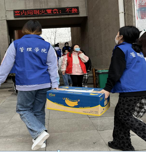 校园里的“领航人”,管理学院师生共进退。面对突如其来的疫情,为了缓解学生对于疫情的恐慌与焦虑,管理学院领导和辅导员老师深入学生寝室,发挥“领航人”的模范带头作用,领导志愿者每天的饭菜分配等后勤工作。面对每天数小时的工作,细心传达讲解着每一句话,了解在校学生心态,有针对性的疏导学生情绪问题,坚守校园,为校园封闭期间各项工作的顺利开展提供有力的后勤保障。
