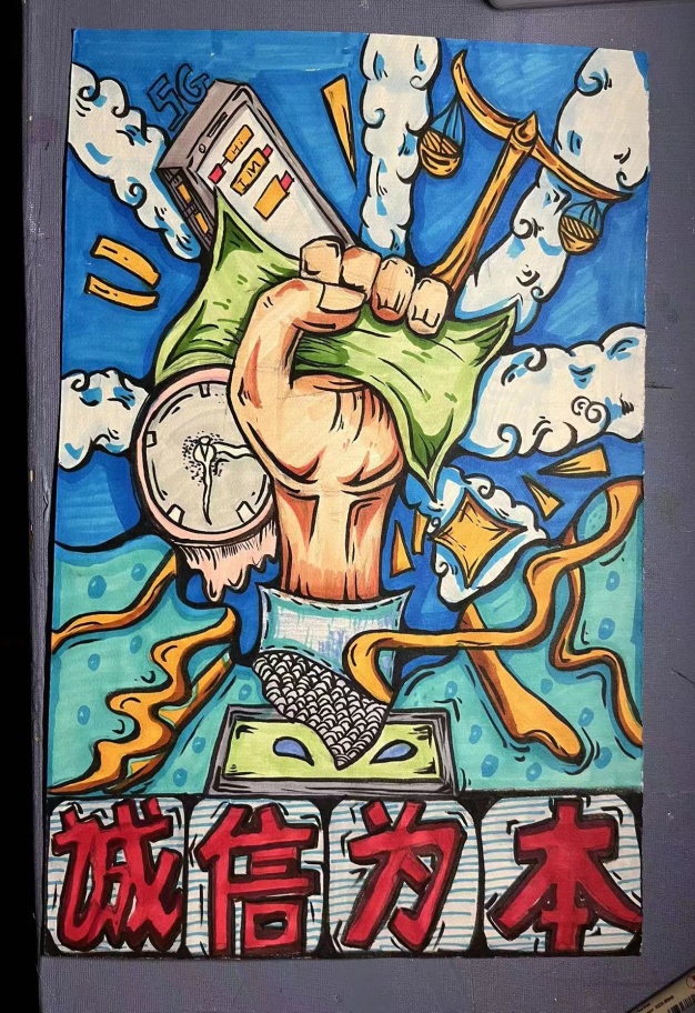 此次活动围绕“诚信•助学•感恩•自强”为主题,活动期间,人文艺术学院学生踊跃报名、积极参与,共征集作品近百余幅,创作出了海报、诚信故事漫画及书法作品等多种类型作品。这些作品展现了学生对诚信的认识,传递了正能量,充分的体现了此次的主题,营造了良好的诚信氛围。
