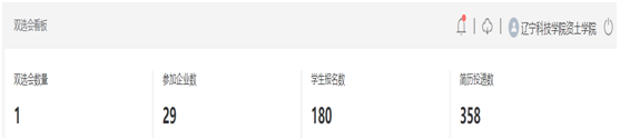 为切实高效地开展此次招聘会,帮助2023届毕业生了解当前就业形势、把握就业机会、实现优质就业。学院主动出击,积极邀请企业参会。最终,共有29家企业受邀参会,发布职位112个,拟招聘人数1203人。双选会采用线上互动的形式,为用人单位和毕业生搭建了安全、高效、便捷的在线交流平台。企业在平台上发布职位需求并收取学生简历。学生通过注册报名、填写简历,查看已报名的企业职位信息并完成简历投递。企业则根据简历投递情况与学生在线沟通并进行视频面试。此次招聘会,共有180名毕业生前来求职、投递简历358份。