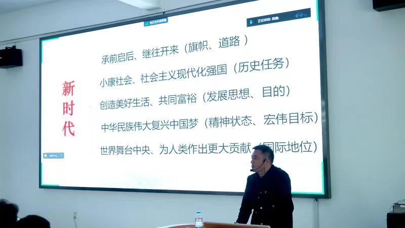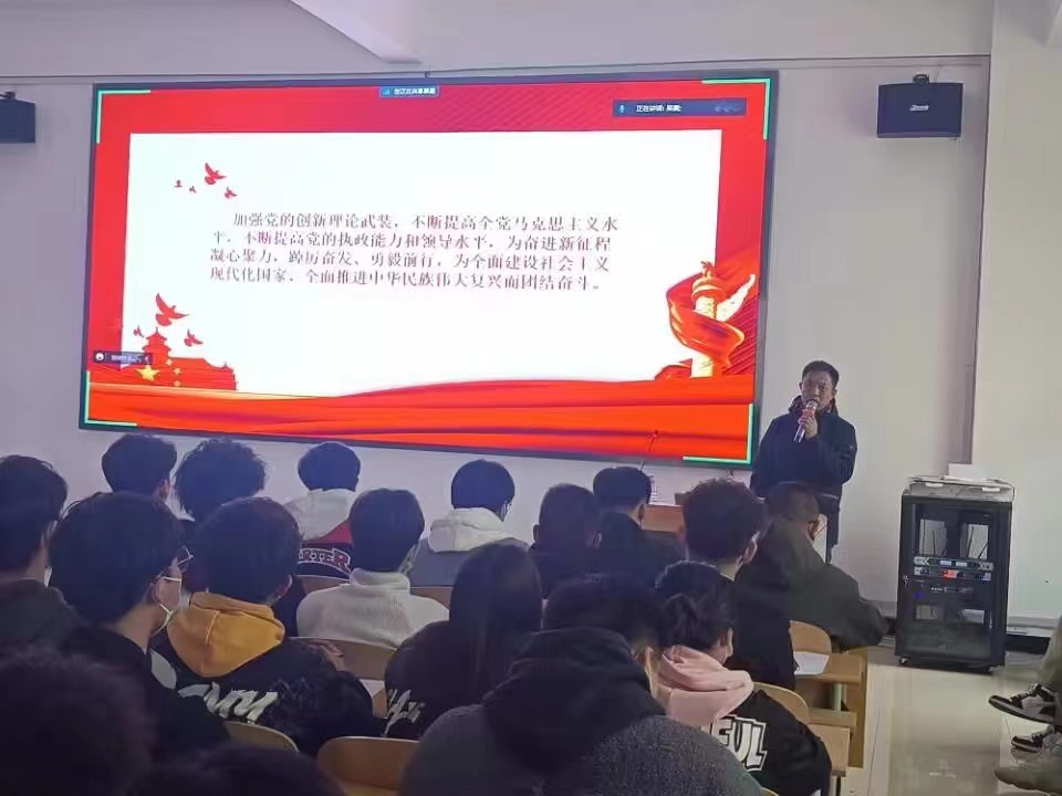 副院长范海英、王喜刚分别到所在土木工程党支部和测绘遥感党支部讲党课。范海英以《深入学习贯彻党的二十大精神在新的征程上推动各项工作新发展》为题,要求党员要强化服务意识,切实增强维护核心、维护党中央权威的政治自觉、思想自觉和行动自觉,把学习宣传贯彻党的二十大精神的实际成效体现在做好全年工作上,推动党的二十大精神贯彻落实到教育教学工作全过程各方面。王喜刚从坚持和加强党的全面领导、发展中国特色社会主义伟大事业的客观需要、实现中华民族伟大复兴的必然要求三个方面对“两个确立”进行了较为深刻的解读,要求支部全体党员要深入学习领会好这一思想的核心内涵、精神实质和重大意义,坚持用党的创新理论、最新成果武装头脑、指导实践、推动工作,把对中国特色社会主义的坚定信念、对中华民族伟大复兴的强大信心转化为做好各项工作的实际行动。