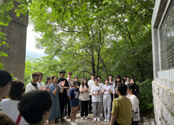 旅游教研室全体教师及学生在抗联馆聆听抗联故事,观看抗联战士的遗物,感受抗联精神。全体党员师生在抗联馆纪念浮雕前重温入党誓词,铮铮誓言表达对党和祖国的无限忠诚,传达出党员们不忘初心使命的决心。