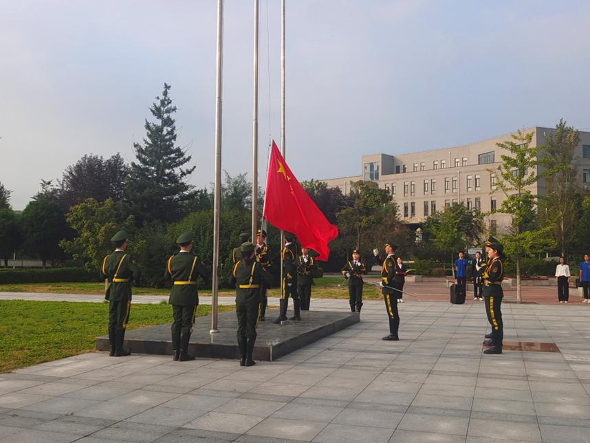 早晨7时整,国旗护卫队迎着朝阳,迈着整齐而铿锵有力的步伐护送国旗走向升旗台。伴随着庄严的国歌,鲜艳的五星红旗冉冉升起,全体师生高唱国歌,行注目礼。