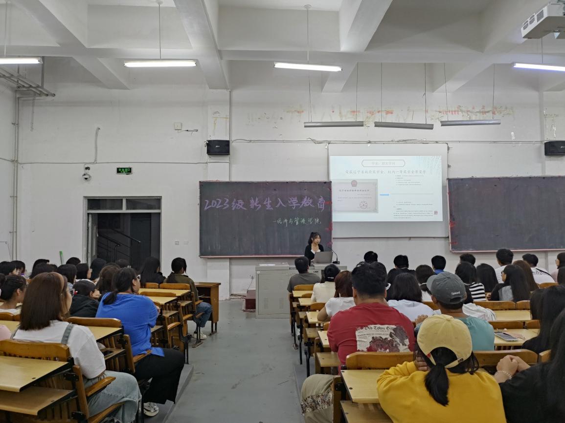 为进一步帮助新生适应大学生活,引导新生明确大学阶段的学习目标,做好生涯规划,加强学风建设,经济与管理学院于9月8日在博雅楼四区109开展2023级新生入学适应教育暨“大学第一课”活动。学院党总支副书记凌正魁、在校优秀学生代表及全体2023级普本新生参加了本次活动。