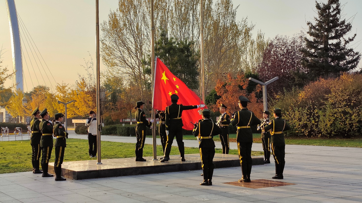 伴着初升的骄阳,国旗护卫队步伐整齐,飒爽英姿,五星红旗在神圣激昂的国歌中缓缓升起。迎着朝阳,青年一代,在这橄榄绿的年华,不断前进。
